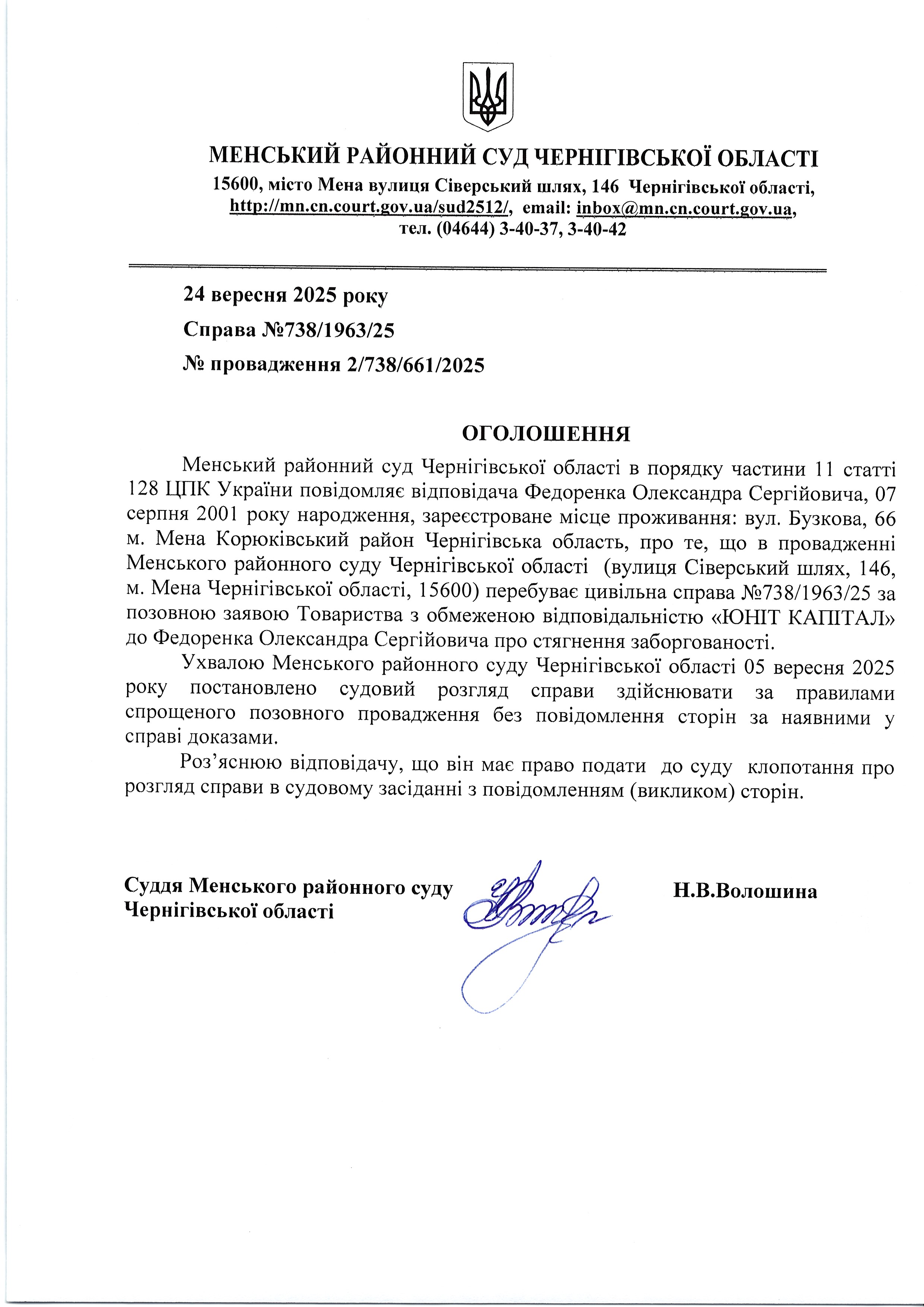 Оголошення про виклик до суду Федоренка Олександра Сергійовича