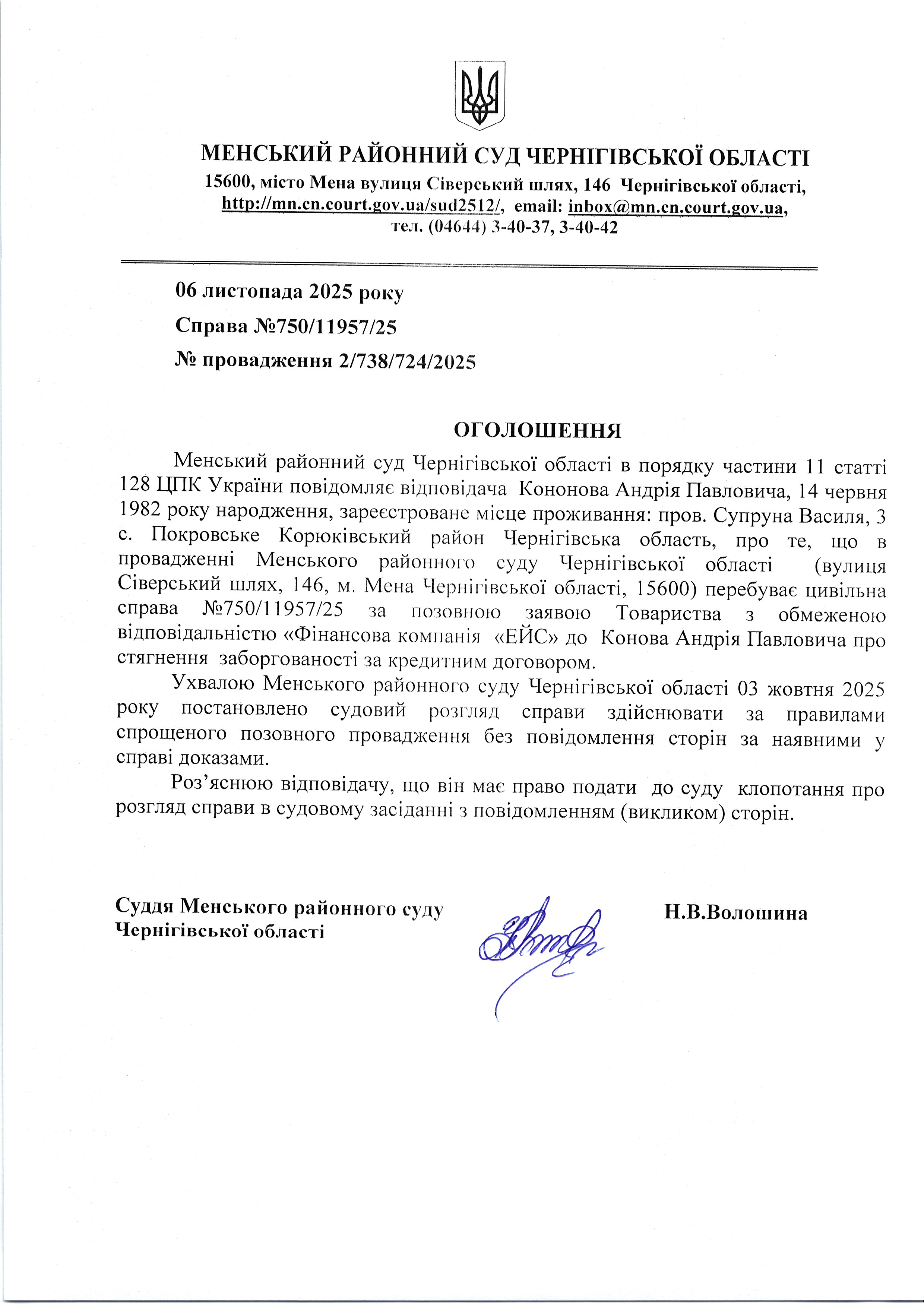 Менський районний суд Чернігівської області