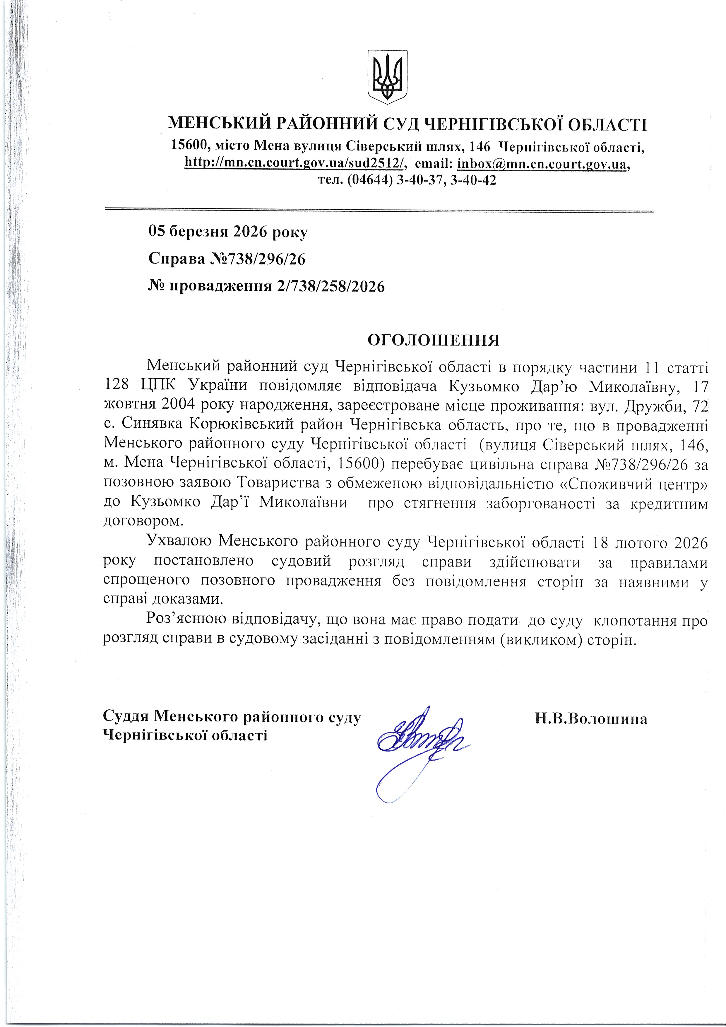 Менський районний суд Чернігівської області